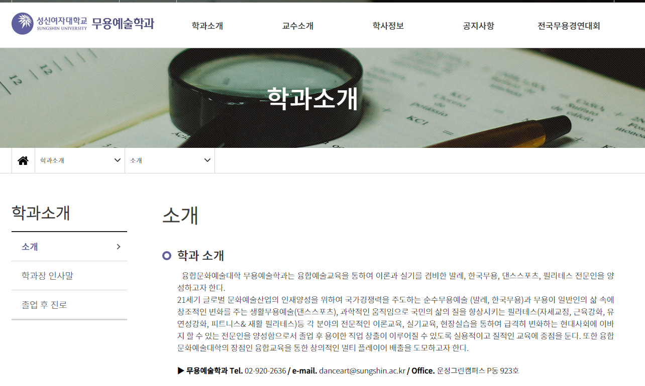 - 성신여자대학교 - 융합문화예술대학 무용예술학과 (한국무용, 발레, 댄스스포츠)